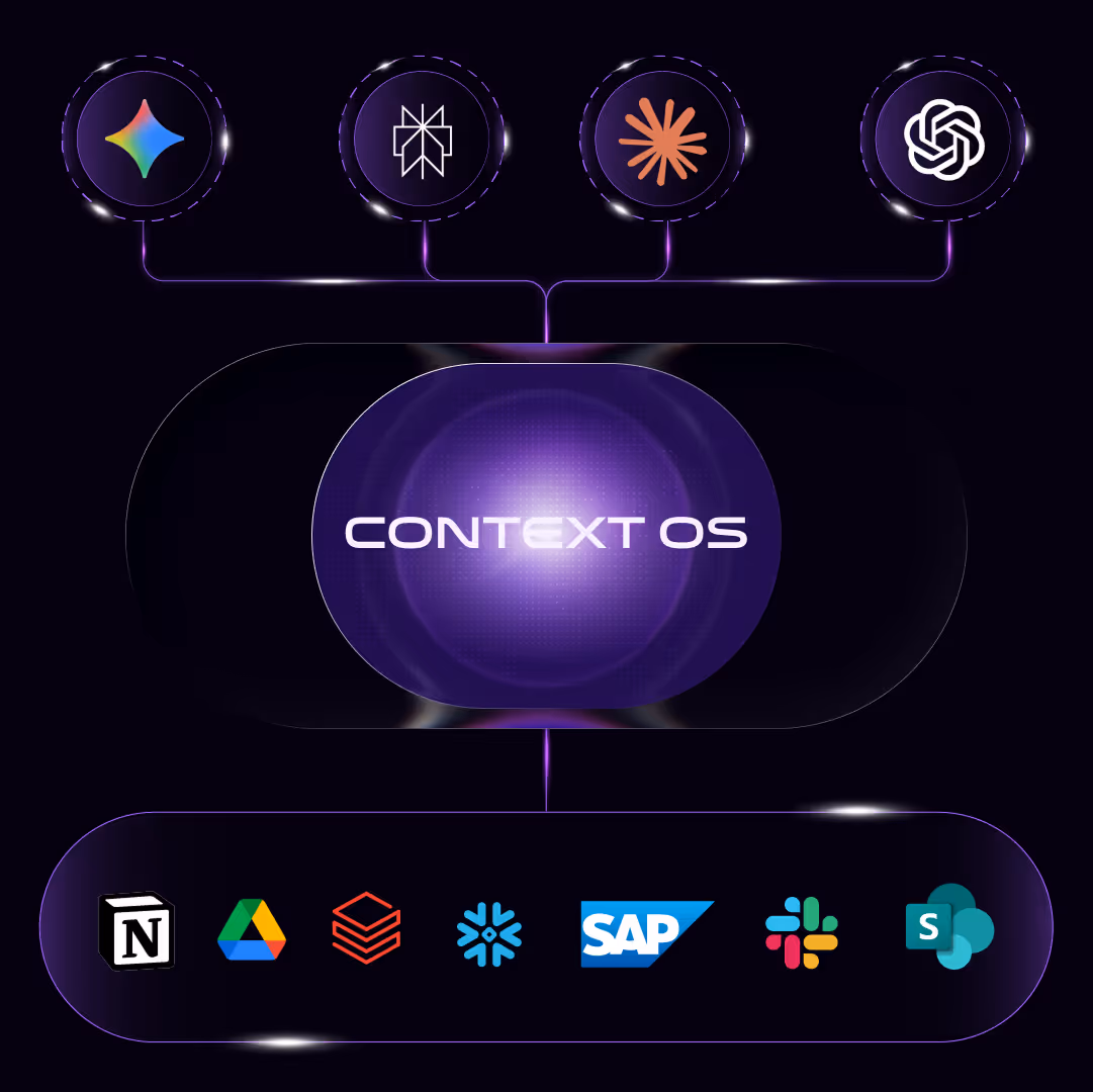 Context OS is the Unified Intelligence Layer that connects across your enterprise tools, unifies data into a living knowledge model, and powers automation that’s secure, transparent, and explainable by design.